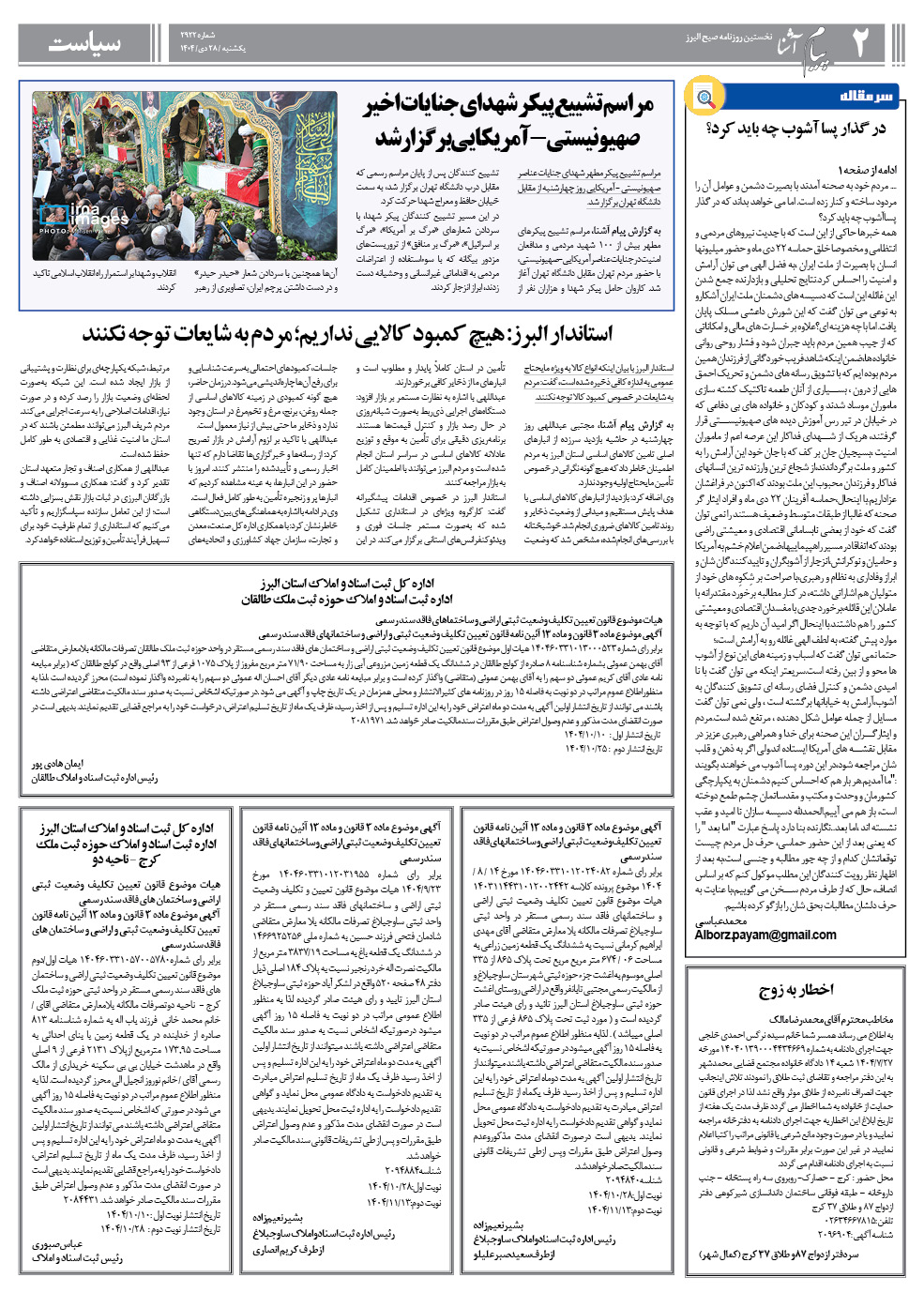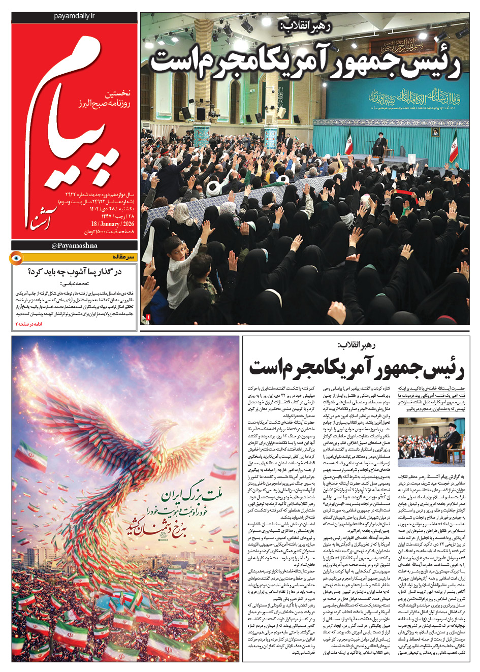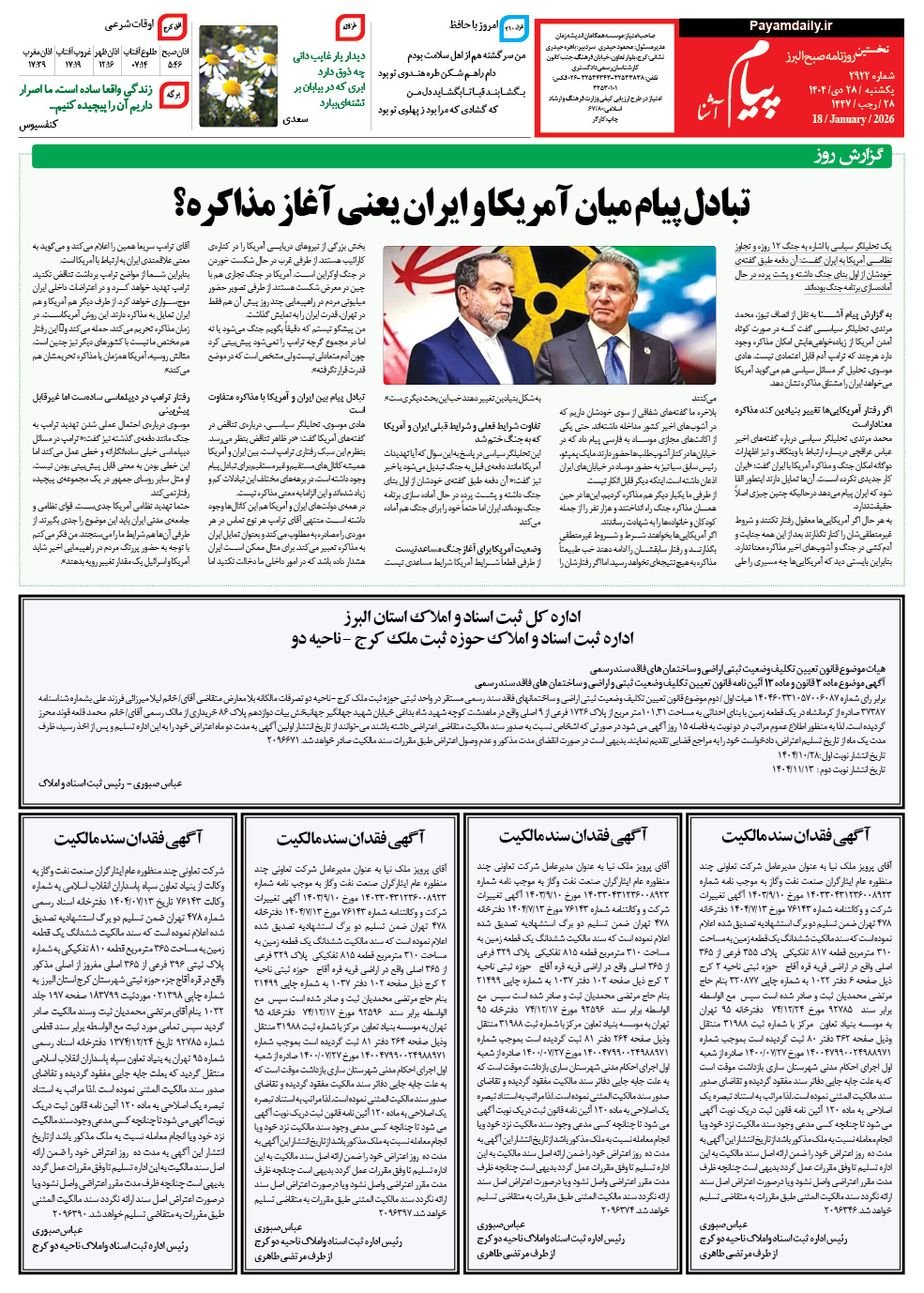 روزنامه پیام آشنا – ۲۸ دی ۱۴۰۴ صفحه یک بزرگنمایی عکس پی دی اف صفحه دو بزرگنمایی عکس پی دی اف صفحه سه بزرگنمایی عکس پی دی اف صفحه چهار بزرگنمایی عکس پی دی اف اشتراک گذاری روزنامه بعدیروزنامه قبلی