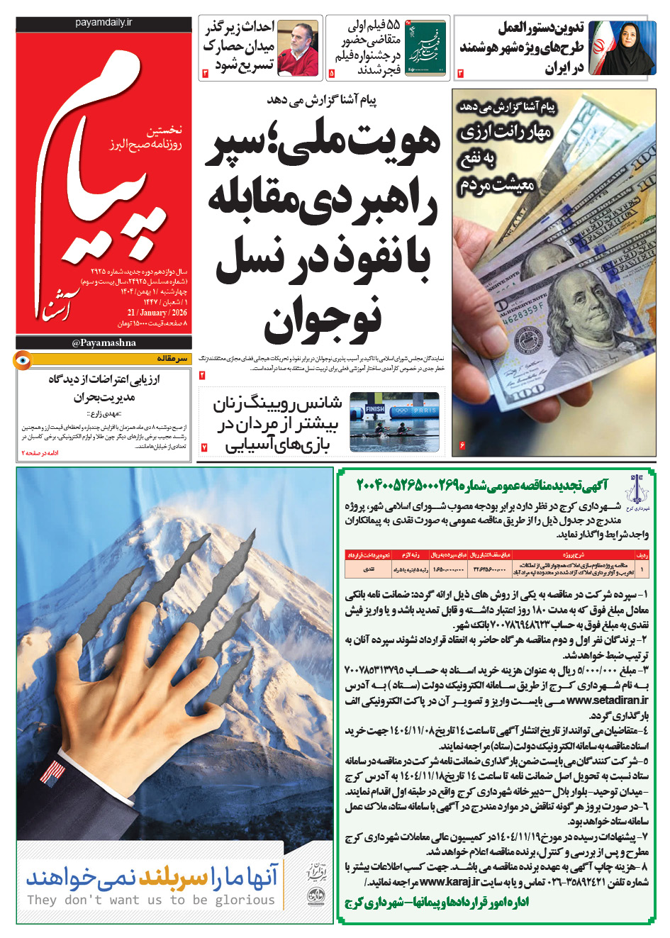روزنامه پیام آشنا – ۱ بهمن ۱۴۰۴ صفحه یک بزرگنمایی عکس پی دی اف صفحه دو بزرگنمایی عکس پی دی اف صفحه سه بزرگنمایی عکس پی دی اف صفحه چهار بزرگنمایی عکس پی دی اف صفحه پنج بزرگنمایی عکس پی دی اف صفحه شش بزرگنمایی عکس پی دی اف صفحه هفت بزرگنمایی عکس پی دی اف صفحه هشت بزرگنمایی عکس پی دی اف اشتراک گذاری روزنامه بعدیروزنامه قبلی