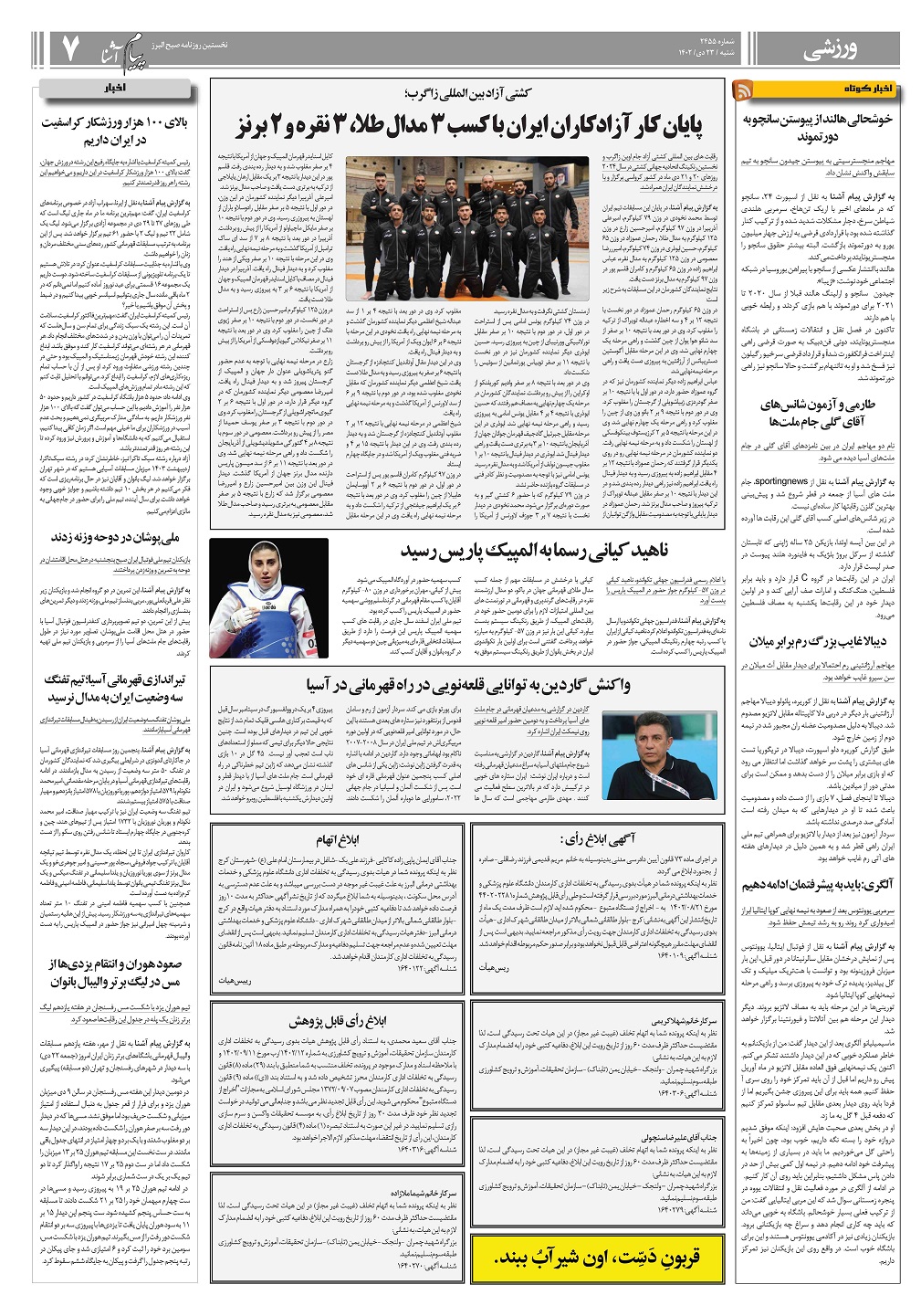 روزنامه پیام آشنا – ۲۳ دی ۱۴۰۲ صفحه یک بزرگنمایی عکس پی دی اف صفحه دو بزرگنمایی عکس پی دی اف صفحه سه بزرگنمایی عکس پی دی اف صفحه چهار بزرگنمایی عکس پی دی اف صفحه پنج بزرگنمایی عکس پی دی اف صفحه شش بزرگنمایی عکس پی دی اف صفحه هفت بزرگنمایی عکس پی دی اف صفحه هشت بزرگنمایی عکس پی دی اف اشتراک گذاری روزنامه بعدیروزنامه قبلی