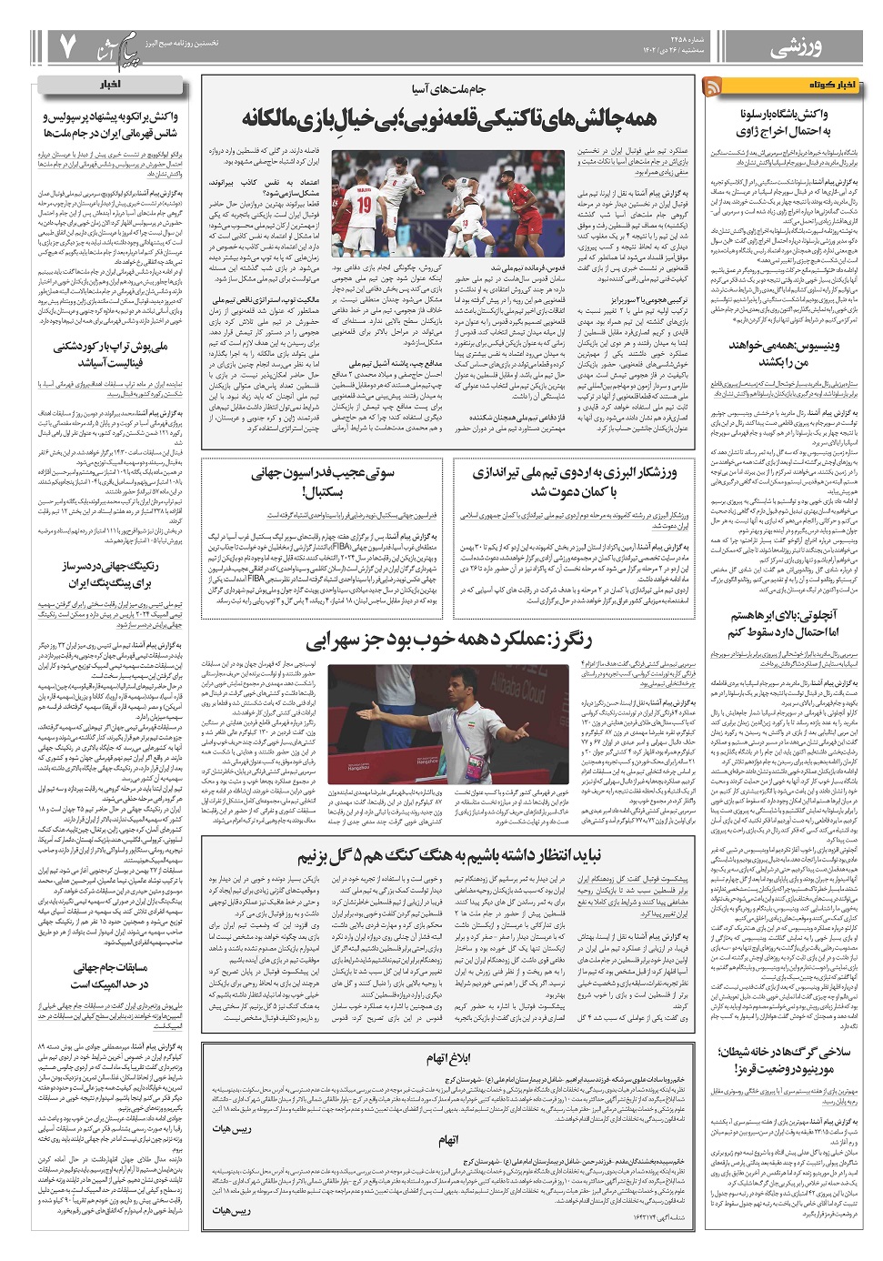 روزنامه پیام آشنا – ۲۶ دی ۱۴۰۲ صفحه یک بزرگنمایی عکس پی دی اف صفحه دو بزرگنمایی عکس پی دی اف صفحه سه بزرگنمایی عکس پی دی اف صفحه چهار بزرگنمایی عکس پی دی اف صفحه پنج بزرگنمایی عکس پی دی اف صفحه شش بزرگنمایی عکس پی دی اف صفحه هفت بزرگنمایی عکس پی دی اف صفحه هشت بزرگنمایی عکس پی دی اف اشتراک گذاری روزنامه بعدیروزنامه قبلی